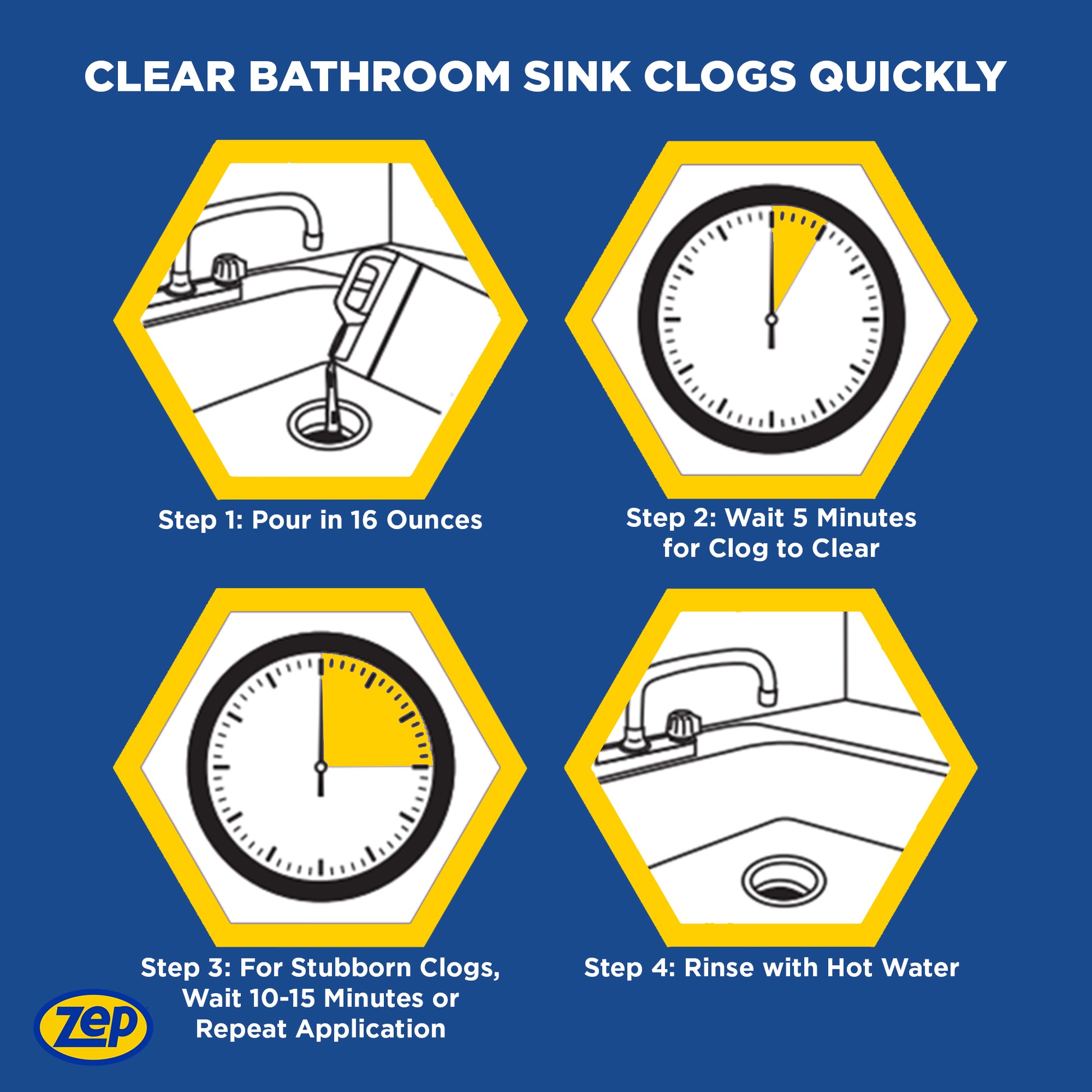- Fast-Acting Formula: Clears bathroom sink clogs in as little as 5 minutes.