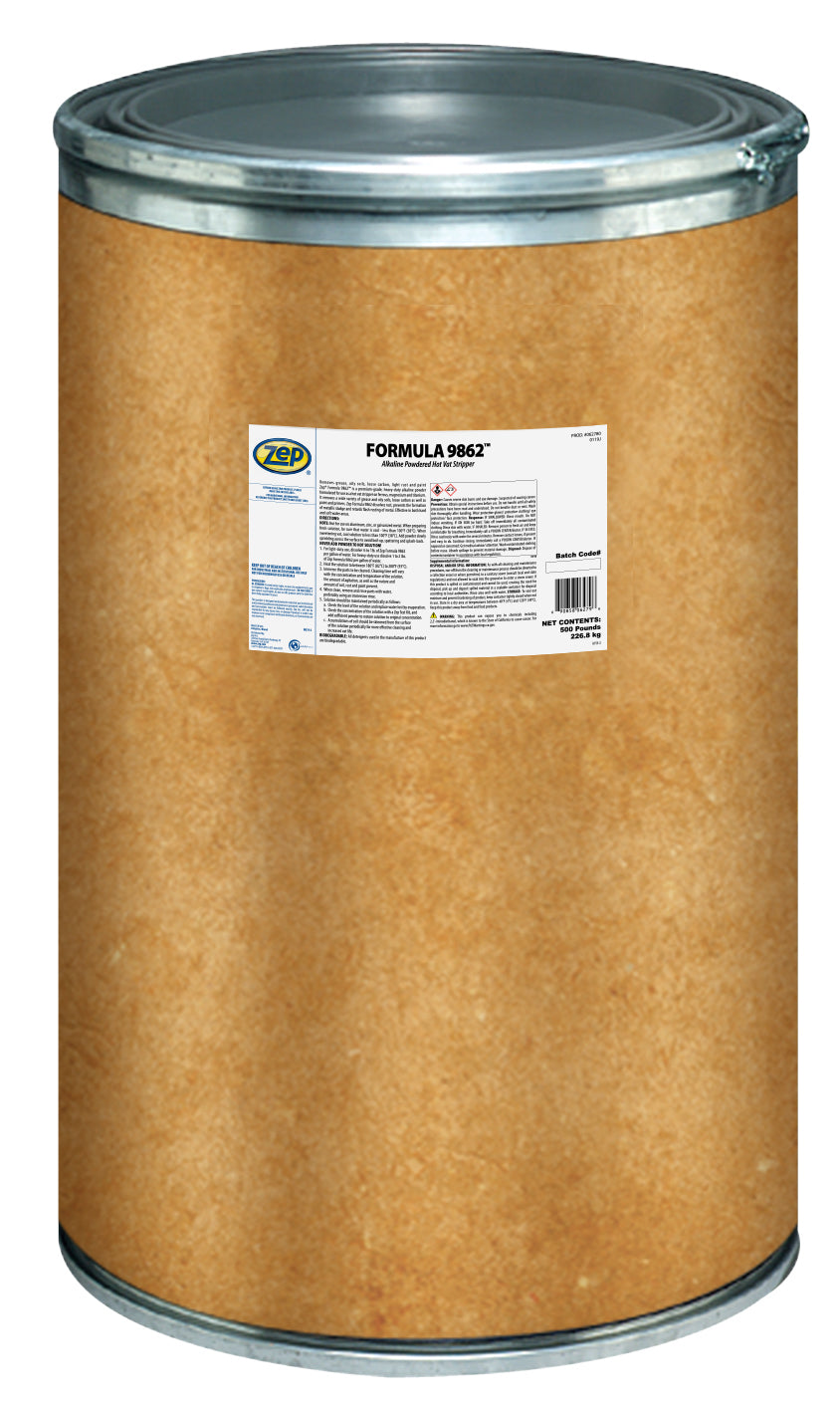 Zep Formula 9862 is a premium-grade, heavy-duty alkaline powder formulated for use specifically as a hot vat stripper on ferrous magnesium and titanium. It removes a wide variety of grease and oily soils, loose carbon as well as paint and primers. Zep Formula 9862 dissolves rust and prevents the formation of metallic sludge. Effective in both hard and soft water areas.