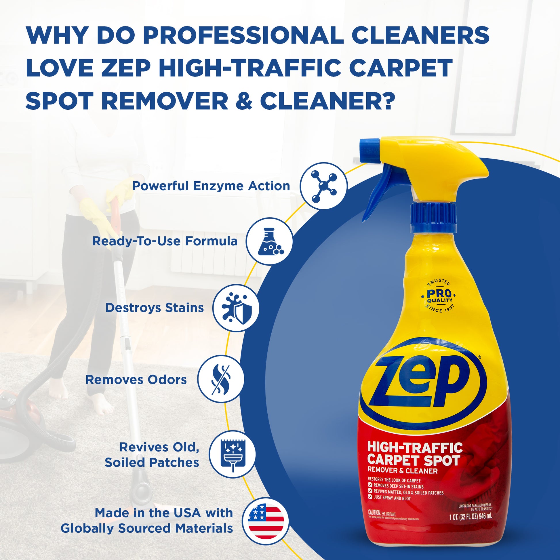 Zep High Traffic Carpet Spot Remover & Cleaner – Enzymatic Stain Remover – 32 Oz.