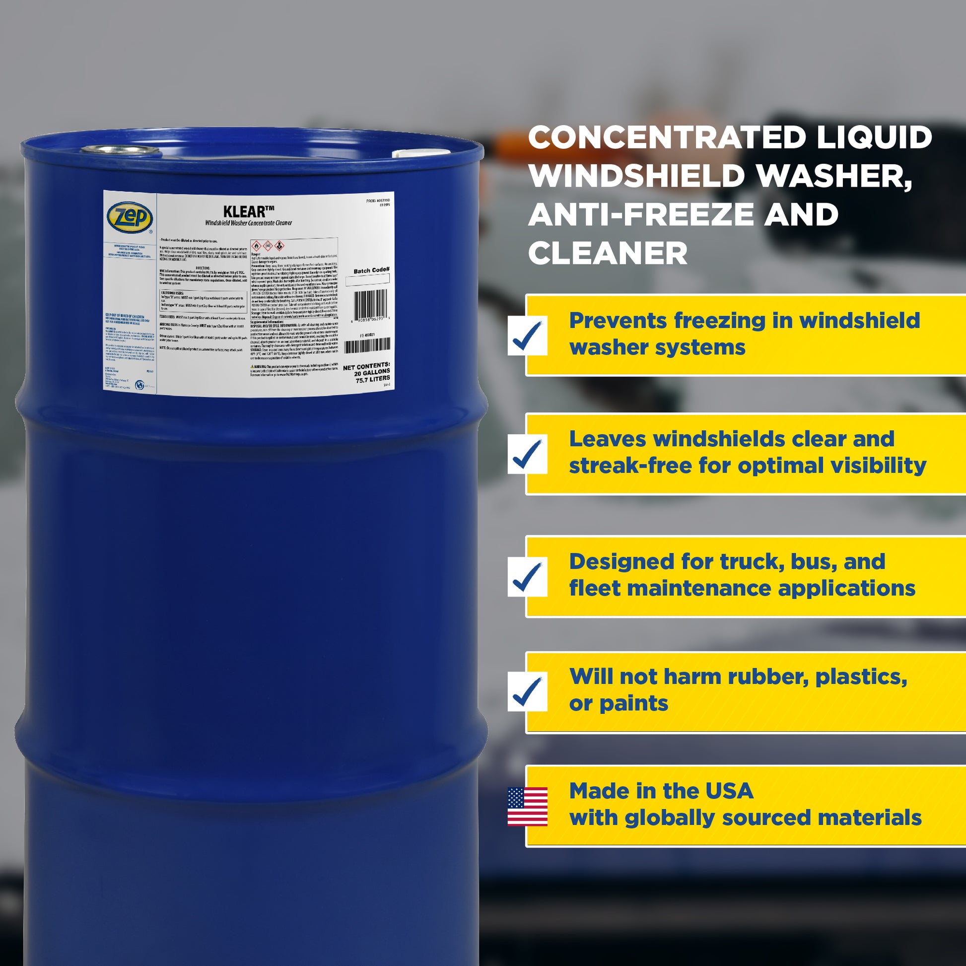 Zep Klear Windshield Washer Cleaner Concentrate – Industrial Windshield Washer Fluid – 20 Gallon