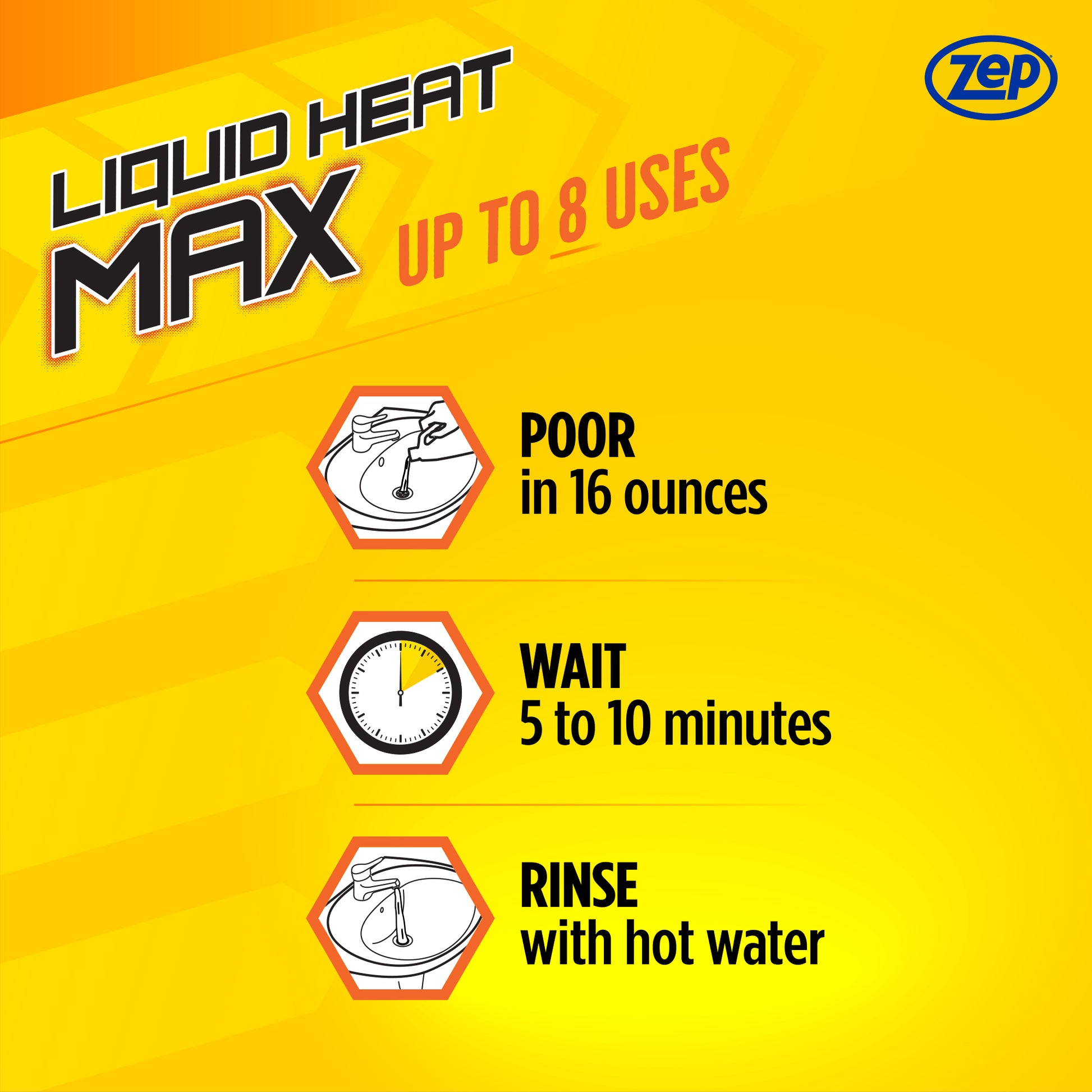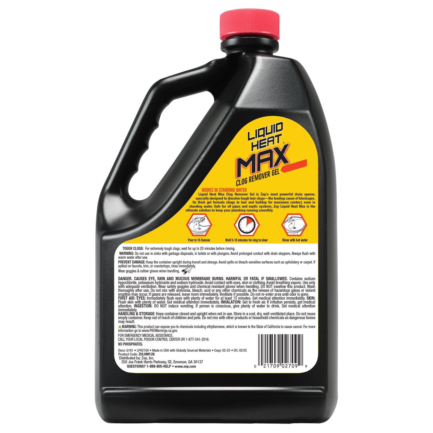 Engineered for maximum effectiveness, Zep Liquid Heat Max Clog Remover Gel blasts through hair, grease, and buildup—the most common causes of household clogs. The professional-strength formula cuts through standing water and clings to debris for superior penetration and clog-busting power. Safe for use in all types of pipes and septic systems, it’s ideal for bathroom sinks, tubs, showers, and kitchen drains. Whether you're dealing with a slow drain or a complete backup, trust Liquid Heat Max to restore flow quickly and safely—without damaging plumbing or calling a professional.