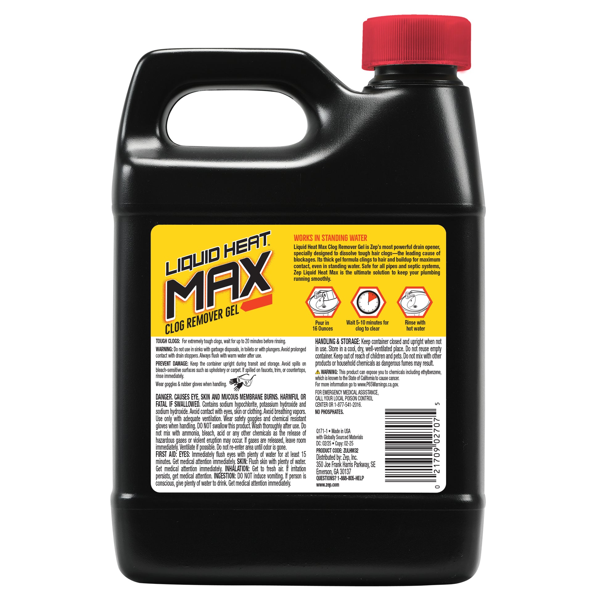 Zep Liquid Heat Max Clog Remover Gel - Destroys Hair, Build-Up & Grease - 32 oz.