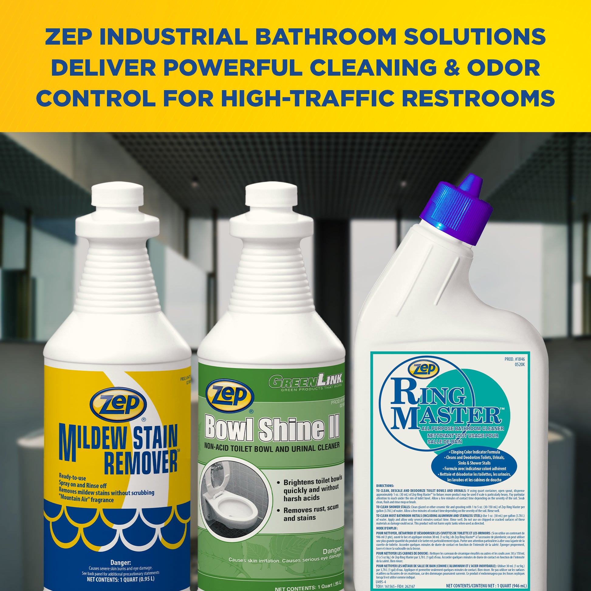 Zep Mildew Stain Remover is a ready-to-use cleaner for removing stubborn mold stains and mildew stains. Effective on bathroom tiles, grout, shower curtains, walls, ceilings, concrete, outdoor furniture, and poolside areas. With its industrial-strength formula, this cleaner removes mold stains and mildew stains without the need for scrubbing.