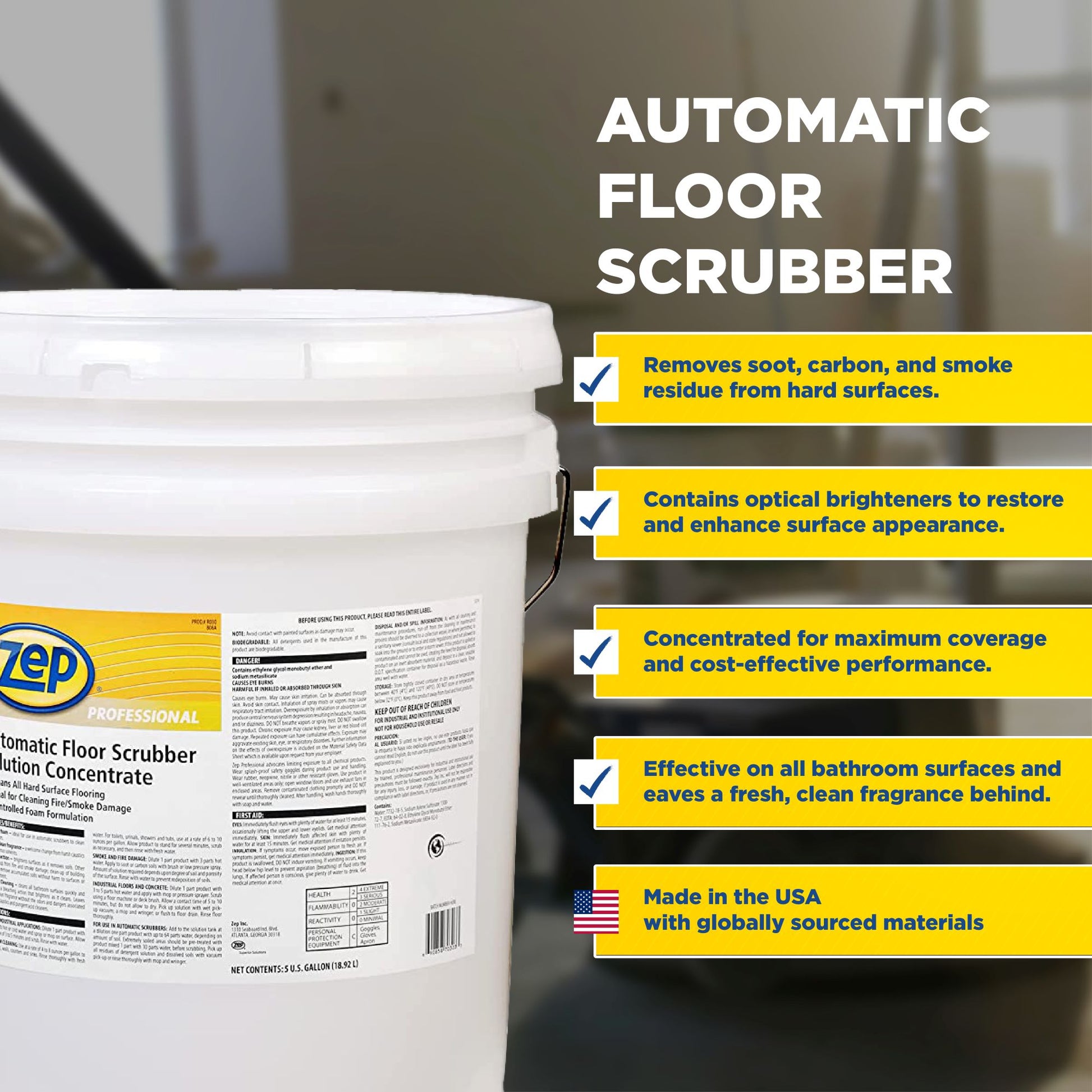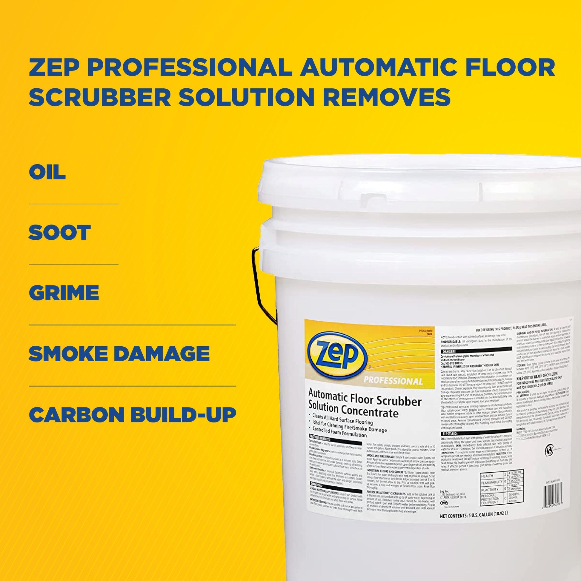 Zep Professional Automatic Floor Scrubber Solution Concentrate – Removes Smoke Damage – 5 Gallons