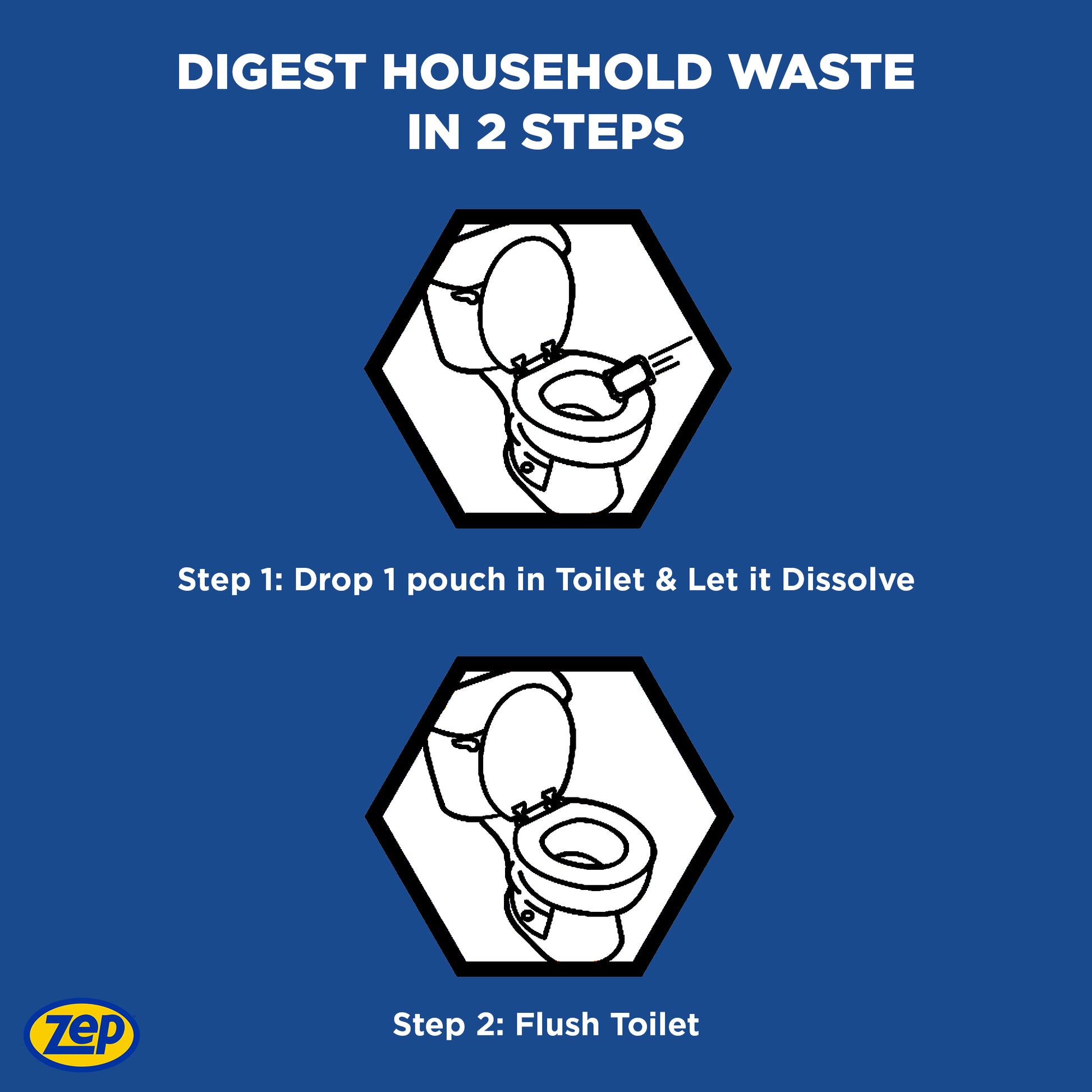 Drop 1 pouch in toilet. Let it dissolve. Flush toilet.