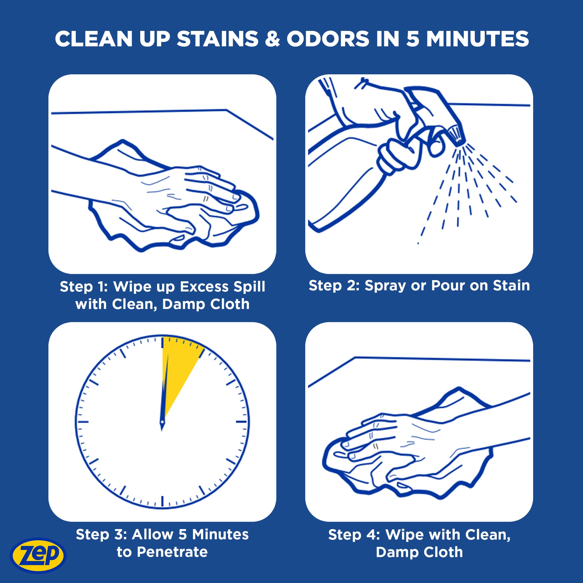 • Zep Pro Tip: For Zep Urine Remover to work its best to repel stains and odors, clean accidents as son as they happen, weather in commercial settings or households.
